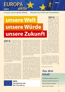 Pünktlich vor der Europawoche erscheint wieder unsere Mitgliederzeitschrift Europa aktiv. Die aktuelle Ausgabe berichtet über das Europäische Jahr für Entwicklung 2015 und die Pläne der EU-Mitgliedstaaten gegen eine Abschaffung der Roaming-Gebühren. Weitere Beiträge beschäftigen sich mit der Europäischen Verteidigungspolitik, dem transatlantischen Freihandelsabkommen TTIP und dem Osten Europas. In der Ausgabe 2-2015 finden Sie außerdem wieder Neuigkeiten aus den Landes- und Kreisverbänden und von unserem Jugendverband, den Jungen… » weiterlesen
