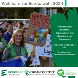 Jetzt geht es in die heiße Phase vor der Europawahl. Bei unserer digitalen verbands:stoff-Akademie am 24. April um 19 Uhr machen wir uns fit für die inhaltlichen Diskussionen und Gespräche bei Aktionen, Infoständen und Veranstaltungen. Nachdem wir uns bei einem Webinar mit der Gesprächsführung an sich befasst haben, geht es jetzt um Fakten und inhaltliche Argumente, die für die EU sprechen. Dabei wollen wir einen besonderen Blick auf die Themenkomplexe Klima und Energie, Asyl und Migration, Wirtschaft und Währung sowie Bürokratie… » weiterlesen