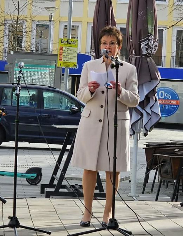 #SlavaUkraini Am 24. Februar 2024 beteiligte sich die Kreisvorsitzende der überparteilichen Europa Union Groß-Gerau am vom Bündnis Demokratie, Vielfalt und Frieden und der demokratischen Parteijugendorganisationen im Kreis Groß-Gerau organisierten Mahnwachen in Rüsselsheim und Groß-Gerau.