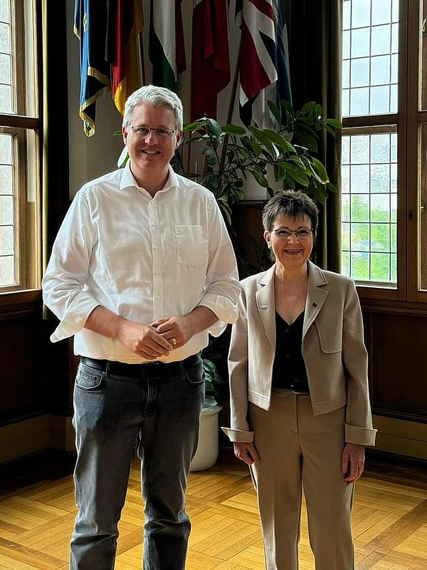 Am 24. Mai 2024 tauschte ich mich als Kreisvorsitzende der überparteilichen Europa Union Kreisverband Groß-Gerau in einem sehr guten und konstruktiven Gespräch mit dem im Januar 2024 neu gewählten Oberbürgermeister der Stadt Rüsselsheim, Patrick Burghardt (CDU), aus.