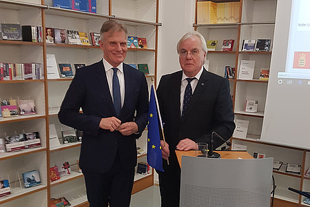 "Niemals können wir in der globalen Welt erfolgreich sein, wenn wir nicht als EU zusammenstehen," sagte der Botschafter. Er belegte anhand von Zahlen, dass der wirtschaftliche Erfolg der Mitgliedsstaaten der EU nur durch das Zusammenwirken im und als Binnenmarkt zustande kommt.