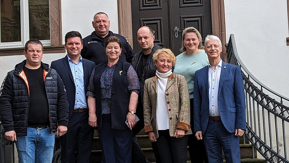 Nun erwidern die Vertreter aus Schepetiwka den Besuch und brachten neben bewegenden Berichten besondere Gastgeschenke mit: Fragmente einer russischen #Drohne und einen Streitkolben, der für Tapferkeit, Ausdauer und den Sieg im Kampf steht.