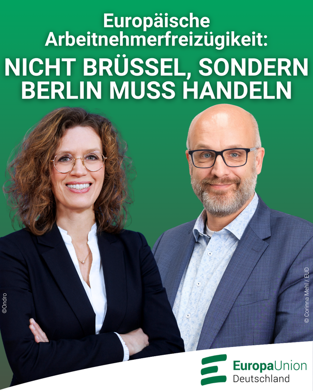 „Die Arbeitnehmerfreizügigkeit ist eine der größten Errungenschaften der europäischen Einigung,“ erklärt EUD-Präsidentin Prof. Dr. Andrea Wechsler. „Sie steht für Freiheit, Mobilität und wirtschaftliche Teilhabe. Wer sie in Zweifel zieht, gefährdet das Herzstück unseres Binnenmarktes und damit den Zusammenhalt Europas.“