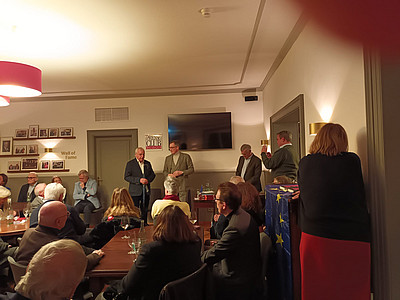 ( Bild: Professor Rödder in der Mitte, links Peter Niederelz und rechts Stefan Schröder, Bild. Europa-Union)
