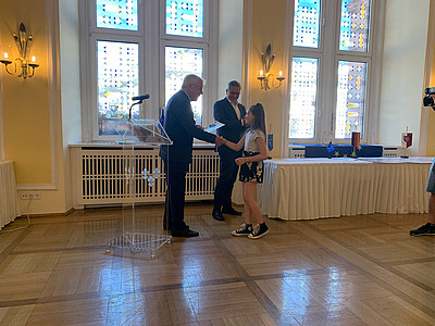 Bei der festlichen Preisverleihungsfeier im Festsaal des Rathauses der Landeshauptstadt Wiesbaden erhielten am Mittwoch insgesamt 75 Preisträgerinnen und Preisträger aus der Landeshauptstadt, dem Rheingau-Taunus-Kreis und dem Main-Taunus-Kreis ihre Urkunden und Preise aus der Hand von Peter H. Niederelz, dem Vorsitzenden der überparteilichen Europa-Union in der Region.