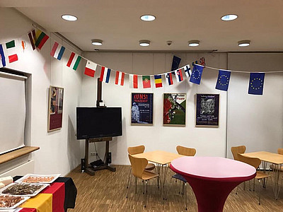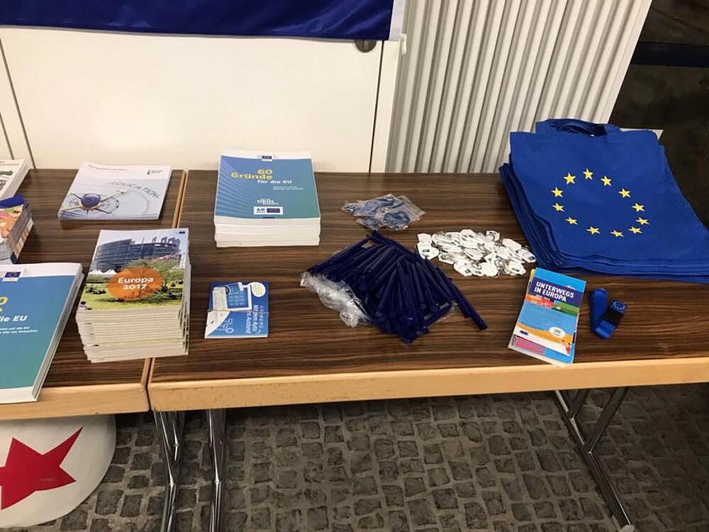 Der Abend klingt aus mit einer höchst munteren Talkrunde von Thomas Mann mit jungen Europäern, die ein Praktikum im Europäischen Parlament gemacht haben: Anna Enders, Felix Heieck, Ramon Henrici und Janis Uhrig. Sie berichten anschaulich über das Zusammenleben von Schülern und Studenten in der EU und im europäischen Ausland, die europäische Identität sowie etliche kuriose Begebenheiten während ihrer Reisen. Nach diesem authentischen Auftritt geht die Diskussion mit allen Teilnehmern der Veranstaltung weiter, während internationale Speisen und Getränke gereicht werden. Ein motivierender Abend für Europa!