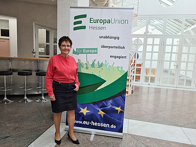 Im Rahmen der am 9. Juli 2022 in Kronberg im Taunus stattgefundenen Landesversammlung der Europa-Union, Landesverband Hessen, wurde die Kreisvorsitzende Ute Wiegand-Fleischhacker zur stellvertretenden Landesvorsitzenden gewählt. Ute Wiegand-Fleischhacker war seit August 2018 als Landesschriftführerin bereits Mitglied des geschäftsführenden Vorstands. Sie betonte in ihrer Vorstellungsrede die Notwendigkeit, dass insbesondere unter dem Eindruck des Kriegs in der Ukraine die Anstrengungen zum Zusammenwachsen der europäischen Nationen noch mehr intensiviert werden müsse. Es müsse eine Aufgabe aller sein, den Bürgerinnen und Bürger die Notwendigkeit eines vereinten Europas und das damit einhergehende Zusammenstehen aller europäischen Staaten näher zu bringen. Nur so könne die derzeitige Krise überwunden und ein künftiger dauerhafter Frieden gewährleistet werden. Hierzu sei unabdingbar, nicht nur mit der Politik, sondern auch mit den Bürgerinnen und Bürgern ins Gespräch zu kommen. Dieses sei eines ihrer erklärten Ziele für ihre künftige Arbeit.