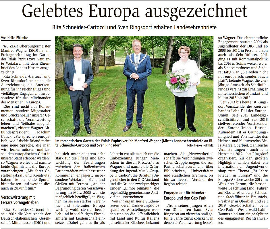 Landesehrenbrief für Sven Ringsdorf