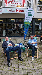 Gut besucht war der Pop-Up-Stand der Europa-Union Lahn-Dill auf dem Demokratiefest in Wetzlar. Am Stand konnten Interessierte und Passanten bei Sven Ringsdorf, Tom Amadé Diehl und Christoph Wehrenfennig in Zusammenarbeit mit der Stadtbibliothek Wetzlar den Wahlomat durchführen und schauen, welches Wahlangebot am 9. Juni bei den Europawahlen am besten passt.