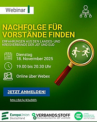 Europa-Union und JEF Deutschland laden am Dienstag, 18. November 2025, um 19.00 Uhr zu einem Webinar zum Thema Vorstandswechsel ein. Manchmal wird die Übergabe von Ämtern zum Hindernislauf: Es…